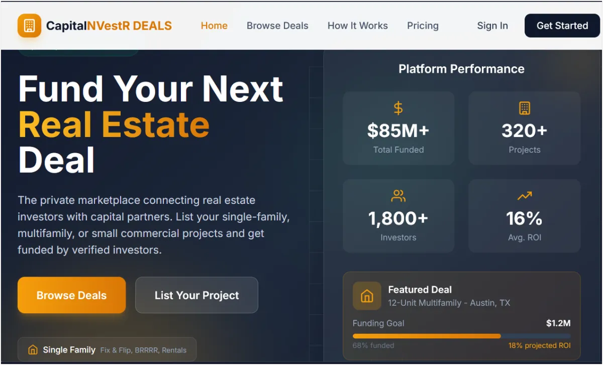 Our proprietary platform is designed to revolutionize the way real estate deals are analyzed and executed. By bridging the gap between vision and capital, we provide a streamlined ecosystem where vetted investors can take a deal from initial evaluation to full funding.